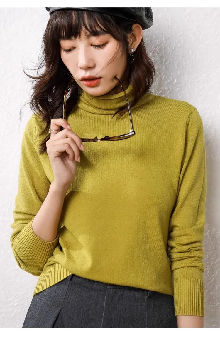 Women Sweater Autumn Winter Warm Turtleneck Bottiming Shirts Korean Fashion Long Sleeve Pullovers Slim Fit Casual Knitwears